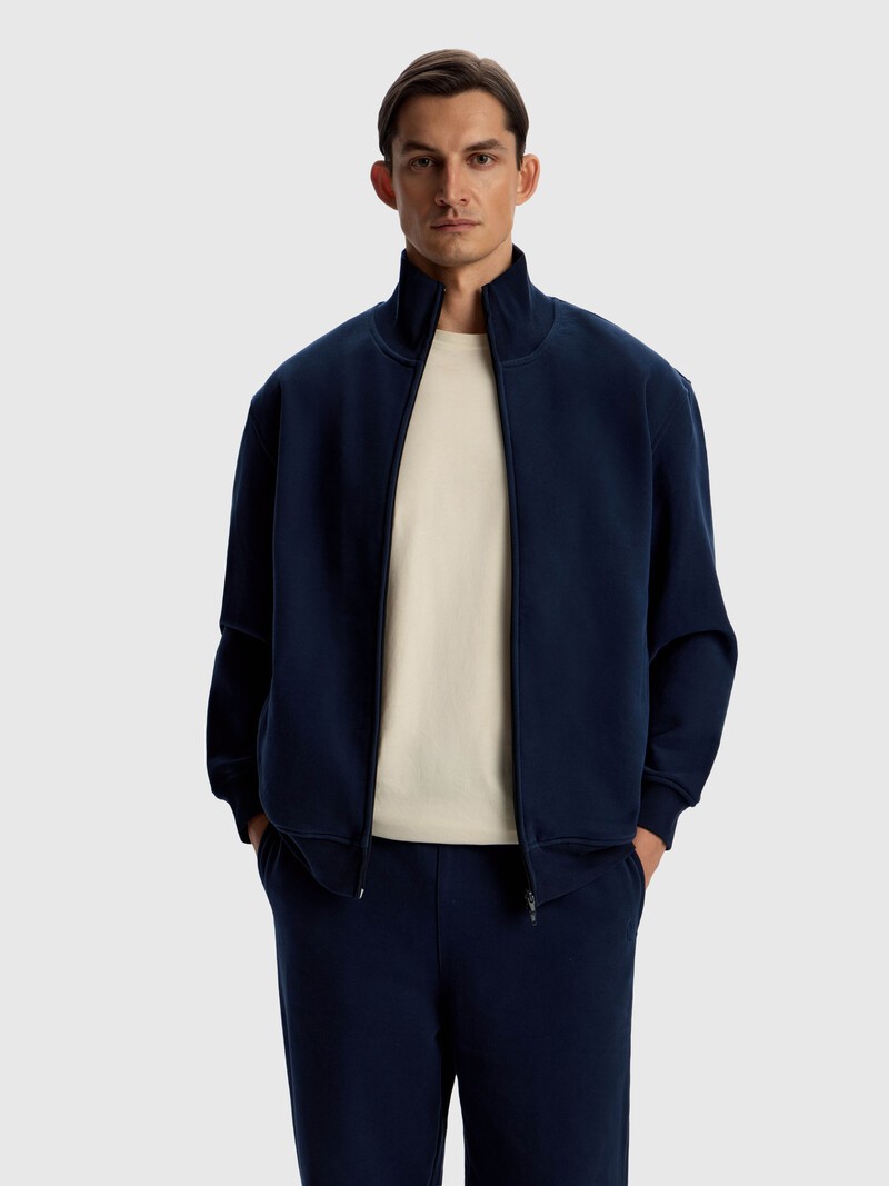 Свободная и аккуратная толстовка с высоким воротником — для повседневных образов. Выполнена из плотного футера, пластичного, износостойкого и практичного. Снаружи ткань обработана специальными щетками, придающими материалу особую мягкость и образующими на поверхности деликатный ворс. Застегивается на двухзамковую молнию. Комбинируйте с брюками из нашей коллекции. Сделано в Китае.