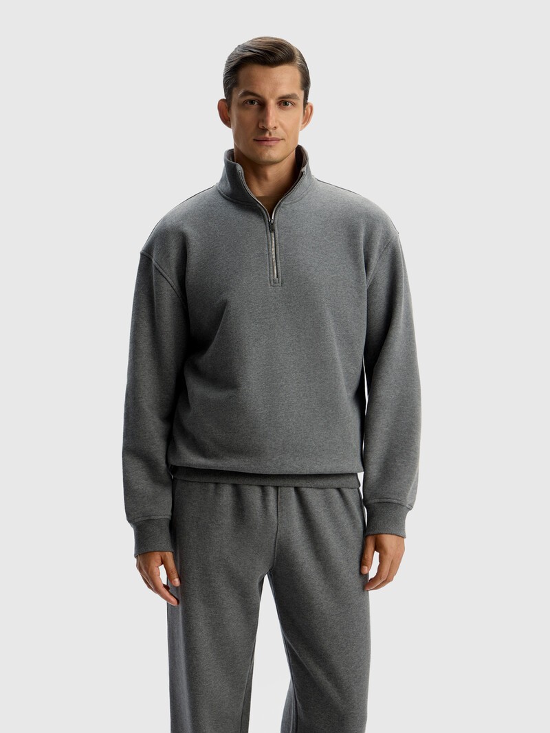 Универсальная толстовка c воротником-стойкой и логотипом 12STOREEZ, вышитым нитями в тон. По нижнему краю и рукавам — резинка для более комфортной посадки. Выполнена из плотного и легкого хлопкового футера с мягкими петельками на изнанке и меланжевой текстурой. Благодаря добавлению искусственных волокон такой материал хорошо держит форму и придает необходимый объем, мягко очерчивая силуэт. Застегивается на металлическую молнию. Сделано в Китае.