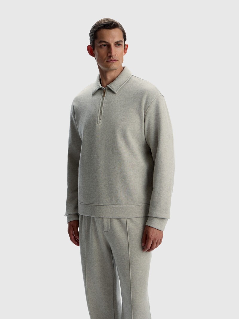 Аккуратная толстовка-поло с начесом. Мы выбрали для нее мягкую и теплую ткань на основе вискозы и шерсти — шелковистую с лицевой стороны и ворсистую с изнанки. Замшевый пуллер можно снять, чтобы уход за толстовкой был проще. Сделано в Китае.