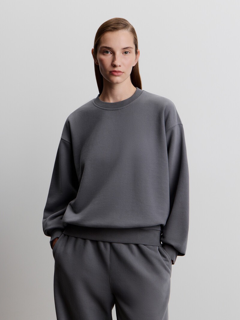 Аккуратный базовый свитшот — не слишком объемный, он подойдет ко всему, от джинсов и юбок до брюк из нашей коллекции. Плотный дышащий футер с бархатистой лицевой стороной и мягкими петельками на изнанке хорошо держит форму и мягко драпируется в складках. Сделано в Китае.