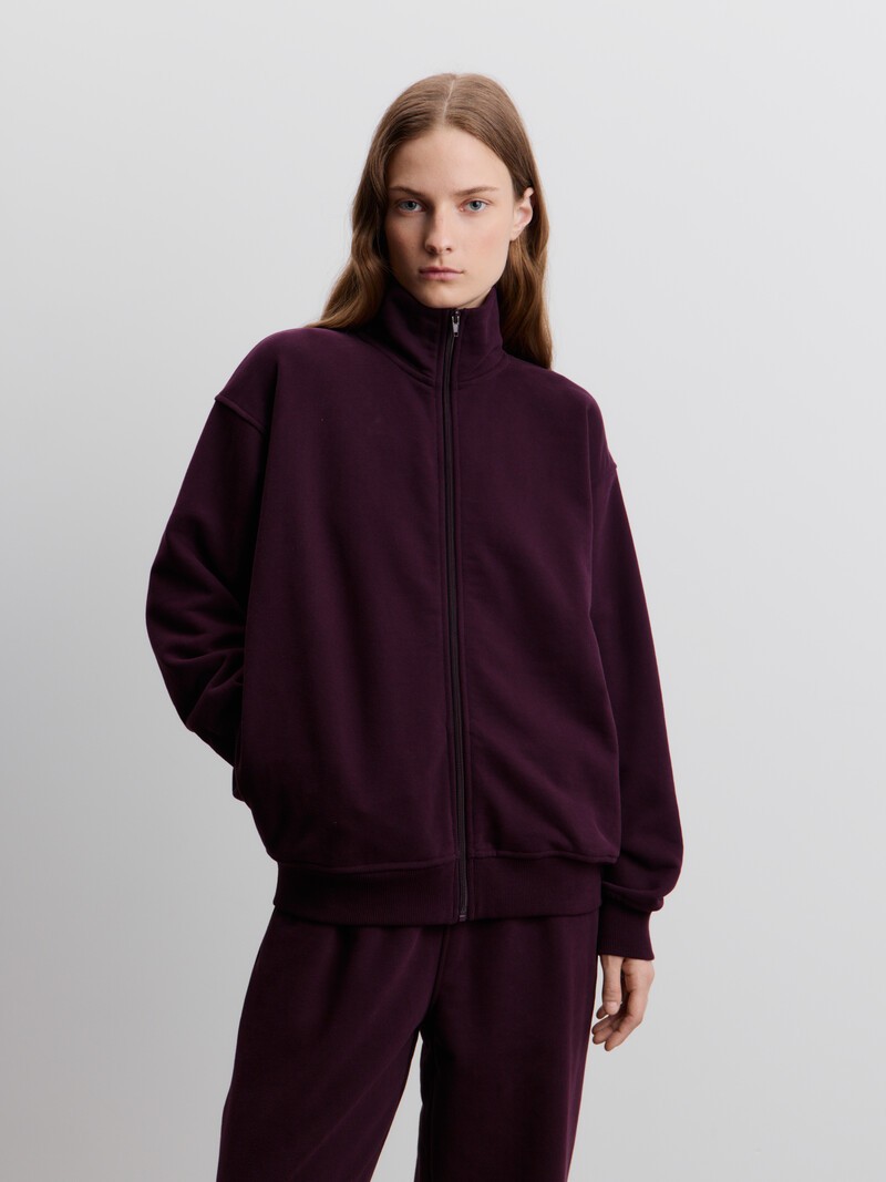 Базовая толстовка из хлопкового футера с маленькими мягкими петельками на изнанке — уютная и свободная. Застежка на молнию делает ее очень практичной, а высокий воротник позволяет носить вместо свитера в холодные дни. Дополните комплект брюками 12 STOREEZ в тон. Сделано в Китае.