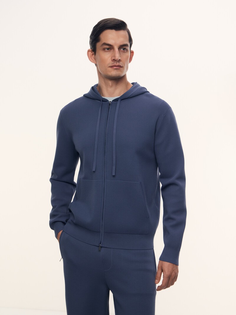 1. Гладкая и мягкая пряжа на основе вискозы и полиамида — приятно касается кожи и слегка охлаждает 2. Держит форму и не вытягивается: двойное переплетение делает трикотаж плотным и устойчивым 3. Молния Easy Close с двумя замками: бегунок сам подхватывает нижнюю деталь, поэтому худи легко застегнуть одной рукой