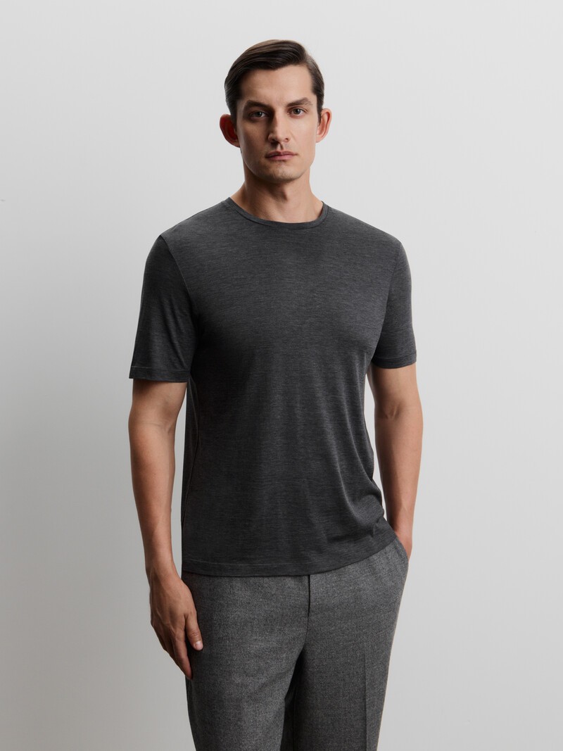 Для этой лаконичной и универсальной футболки мы выбрали роскошную смесь шелка с хлопком. Такой трикотаж комфортно облегает и легко вписывается в гардероб благодаря нейтральному оттенку. Носите футболку под пиджак или самостоятельно — благодаря составу она будет уместна и днем, и вечером, независимо от сезона. Сделано в Китае.