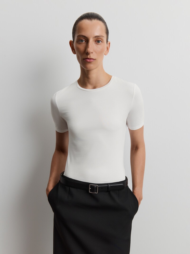 Футболка — самая тонкая и прилегающая из нашей коллекции. Мягкий трикотаж с приятной шелковистой фактурой комфортно облегает силуэт, отлично дышит, впитывает влагу и не растягивается со временем. Рекомендуем выбирать белье в тон. Сделано в Китае.