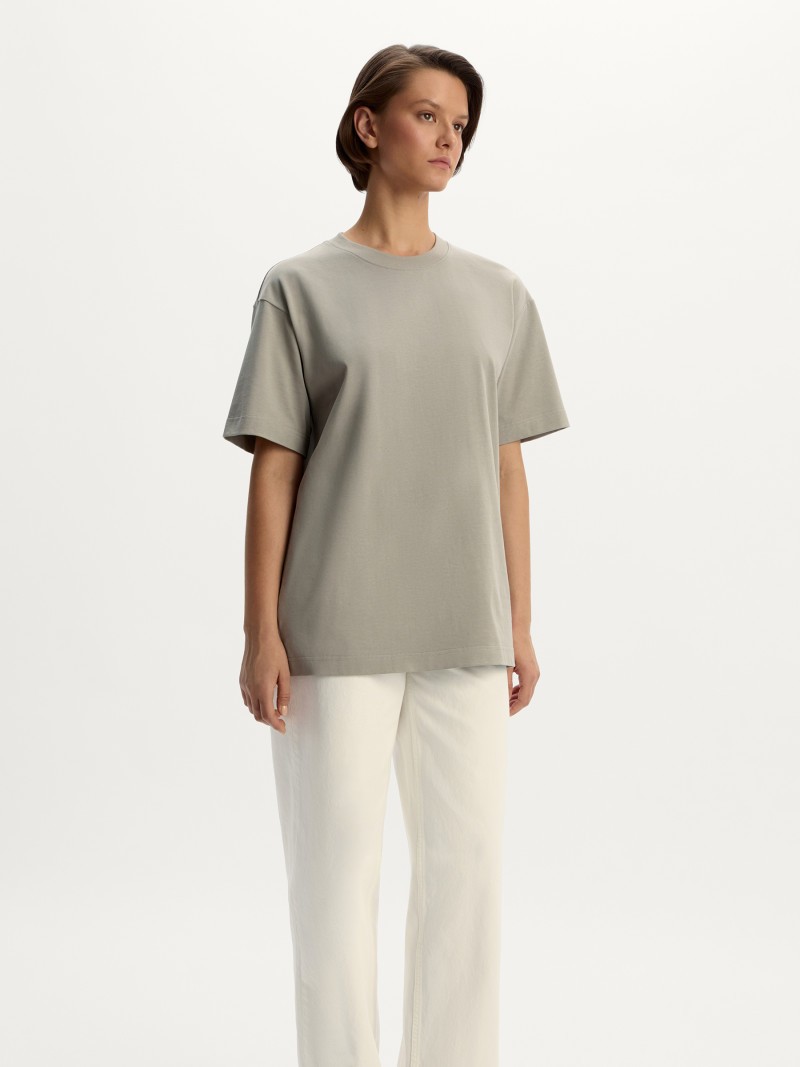 Объемная удлиненная футболка на каждый день. Дополните образ джинсами или спортивными брюками, акцентными аксессуарами или шопером. Мы выбрали для модели плотный и мягкий дышащий хлопок — комфортно будет с утра и до самого вечера. Сделано в Китае.