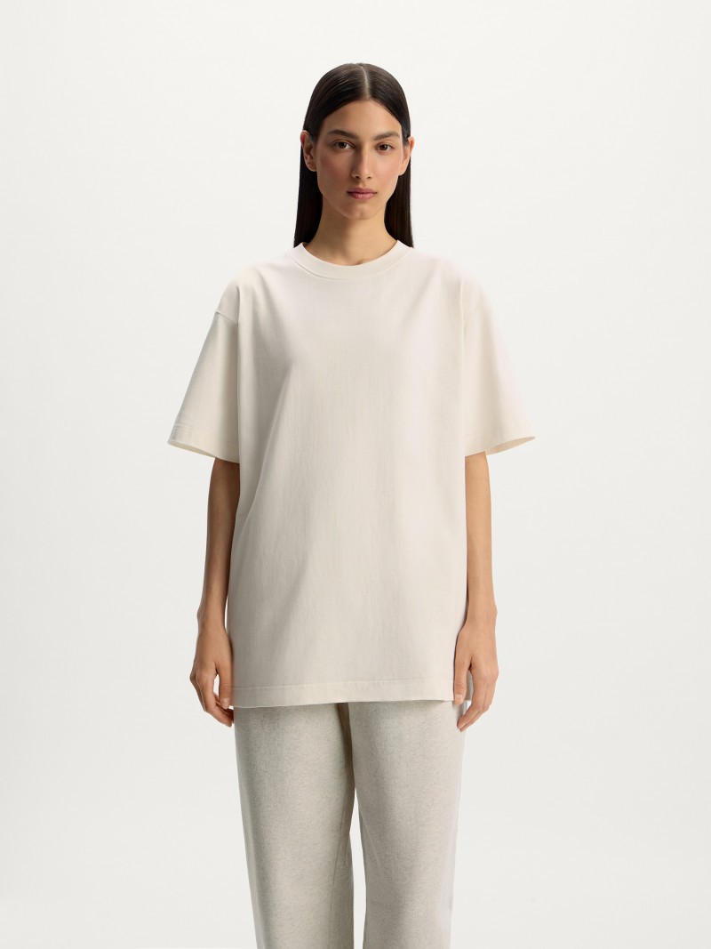 Объемная удлиненная футболка на каждый день. Дополните образ джинсами или спортивными брюками, акцентными аксессуарами или шопером. Мы выбрали для модели плотный и мягкий дышащий хлопок — комфортно будет с утра и до самого вечера. Сделано в Китае.