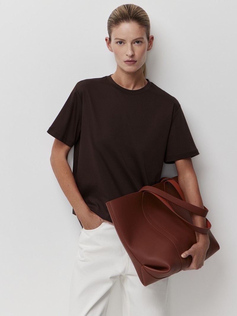 Свободная футболка мужского кроя — наш бестселлер уже несколько сезонов. Она сшита из плотного, но тонкого хлопка с двойным переплетением и сочетается с чем угодно: от любимых джинсов до юбки в пол. Мерсеризованный хлопок — мягкий и гладкий, с шелковистым блеском. Специальная обработка волокон делает материал более прочным и защищает от выцветания. Сделано в Китае.
