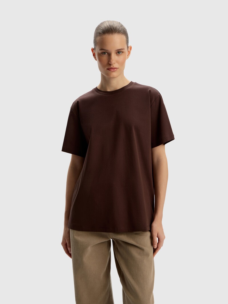 Свободная футболка для комфортных повседневных образов. Выполнена из тонкого длинноволокнистого хлопка с двойным переплетением, который в течение многих лет сохраняет прочность и насыщенность оттенка. Мерсеризованный хлопок — мягкий и гладкий, с шелковистым блеском. Специальная обработка волокон делает материал более прочным и защищает от выцветания.