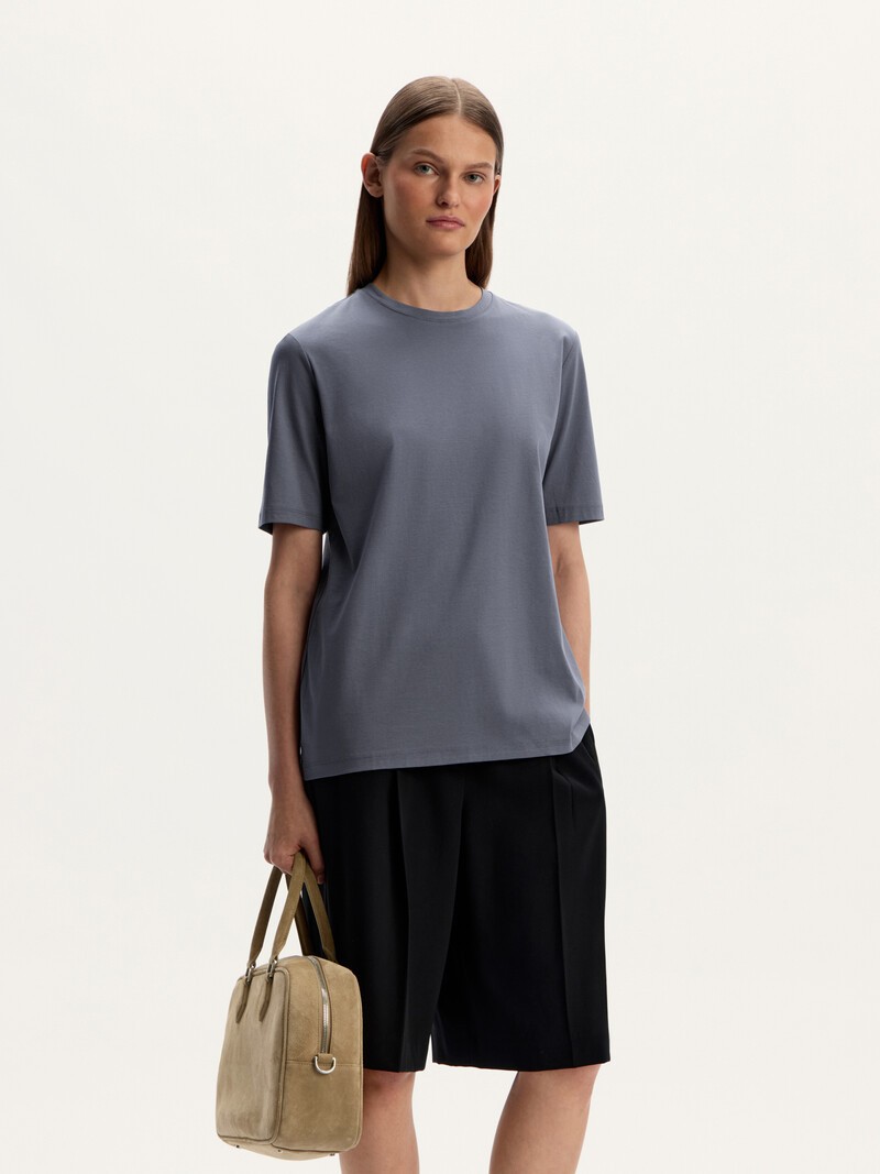 Базовая футболка с удлиненным рукавом легко впишется в ваш повседневный гардероб. Ткань для этой футболки состоит из длинных хлопковых волокон, что делает ее особенно прочной, а благодаря двойному переплетению интерлок трикотаж не вытягивается и не перекручивается в швах. Мерсеризованный хлопок — мягкий и гладкий, с шелковистым блеском. Специальная обработка волокон делает материал более прочным и защищает от выцветания. Сделано в Китае.