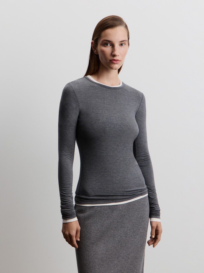 Аккуратный лонгслив из нежного трикотажа с шелком — в этом сезоне мы обновили нашу модель-бестселлер. Лонгслив удобно заправить в брюки и юбку, а благодаря тому, что гладкий и невесомый материал дышит и хорошо впитывает влагу, вам будет комфортно весь день — то, что нужно для первого слоя. Рекомендуем сочетать с бесшовным бельем. Сделано в Китае.