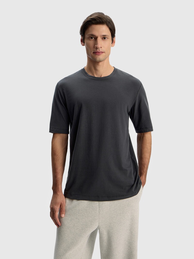Аккуратная базовая футболка — прямой силуэт, универсальный оттенок, комфортное прилегание. Выполнена из мягкой хлопковой ткани, бархатистой на ощупь и легкой, что придает образам более уютный и расслабленный вид. Сделано в Китае.