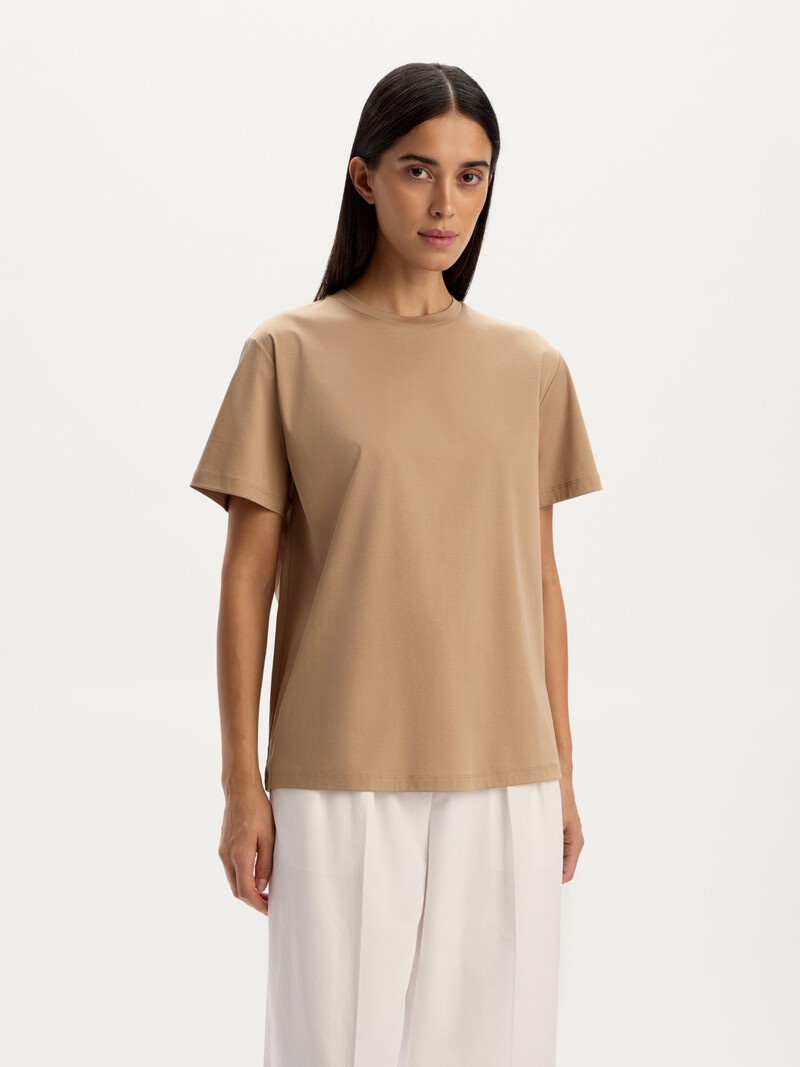 Свободная футболка для комфортных повседневных образов. Выполнена из тонкого длинноволокнистого хлопка с двойным переплетением, который в течение многих лет сохраняет прочность и насыщенность оттенка. Мерсеризованный хлопок — мягкий и гладкий, с шелковистым блеском. Специальная обработка волокон делает материал более прочным и защищает от выцветания. Сделано в Китае.