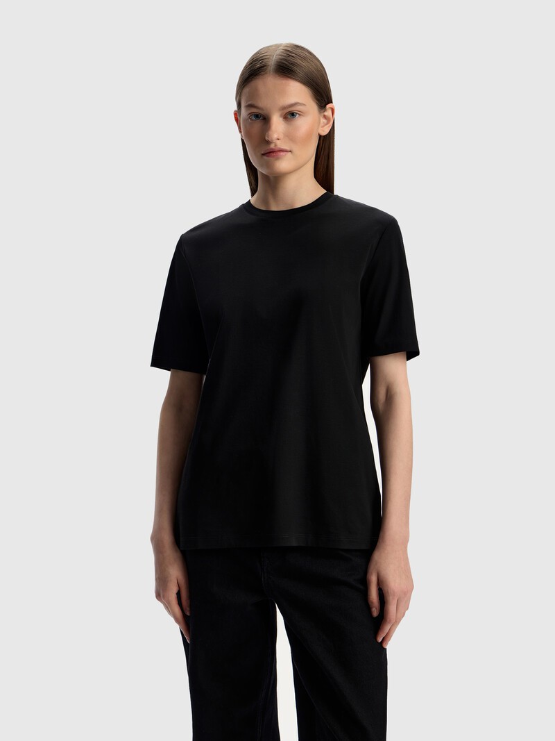 Базовая футболка — наш бестселлер. Прямой силуэт, круглый вырез, удлиненный рукав — такая модель легко впишется в повседневный гардероб. Выполнена из длинноволокнистого хлопка с двойным переплетением интерлок, благодаря которому трикотаж не вытягивается и не перекручивается в швах. Мерсеризованный хлопок — мягкий и гладкий, с шелковистым блеском. Специальная обработка волокон делает материал более прочным и защищает от выцветания. Сделано в Китае.
