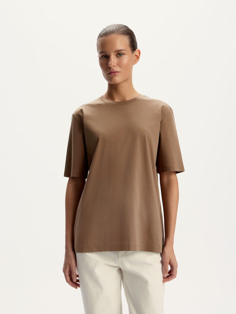 Базовая футболка с немного удлиненным рукавом, который не будет топорщиться под надетым сверху жакетом или рубашкой. Изделие выполнено из длинноволокнистого хлопка с двойным переплетением интерлок, благодаря которому трикотаж не вытягивается и не перекручивается в швах. Мерсеризованный хлопок — мягкий и гладкий, с шелковистым блеском. Специальная обработка волокон делает материал более прочным и защищает от выцветания. Сделано в Китае.