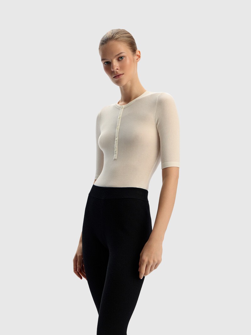 Универсальное и практически невесомое боди с круглым вырезом и аккуратной планкой с пуговицами. Боди мягко прилегает к телу, что позволяет носить его под жакет или использовать как дополнительный согревающий слой в холодные дни. Выполнено из струящегося трикотажа с рибовым переплетением, который хорошо держит форму и благодаря добавлению шерсти сохраняет тепло. Ластовица застегивается на кнопки. Деликатный материал требует бережного обращения: аксессуары могут оставить затяжки или повредить нить. Лиоцелл — нежное на ощупь волокно из древесины эвкалипта, современная и экологичная альтернатива вискозе. В процессе производства не используются токсичные вещества, поэтому вредные выбросы не загрязняют атмосферу.