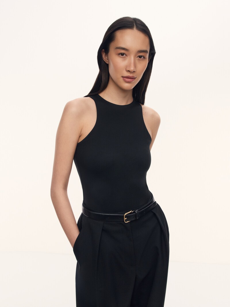 1. Не ощущается на теле и повторяет линии вашей фигуры — сделано из тонкого гладкого трикотажа, легкого и приятного к телу 2. Для вашего комфорта мы сделали боди двухслойным и продумали конструкцию так, чтобы изделие выглядело бесшовным 3. Легко отрегулировать по росту — с помощью кнопок на ластовице Трикотаж тонкий. Если появилась зацепка, аккуратно подтяните нить с изнанки
