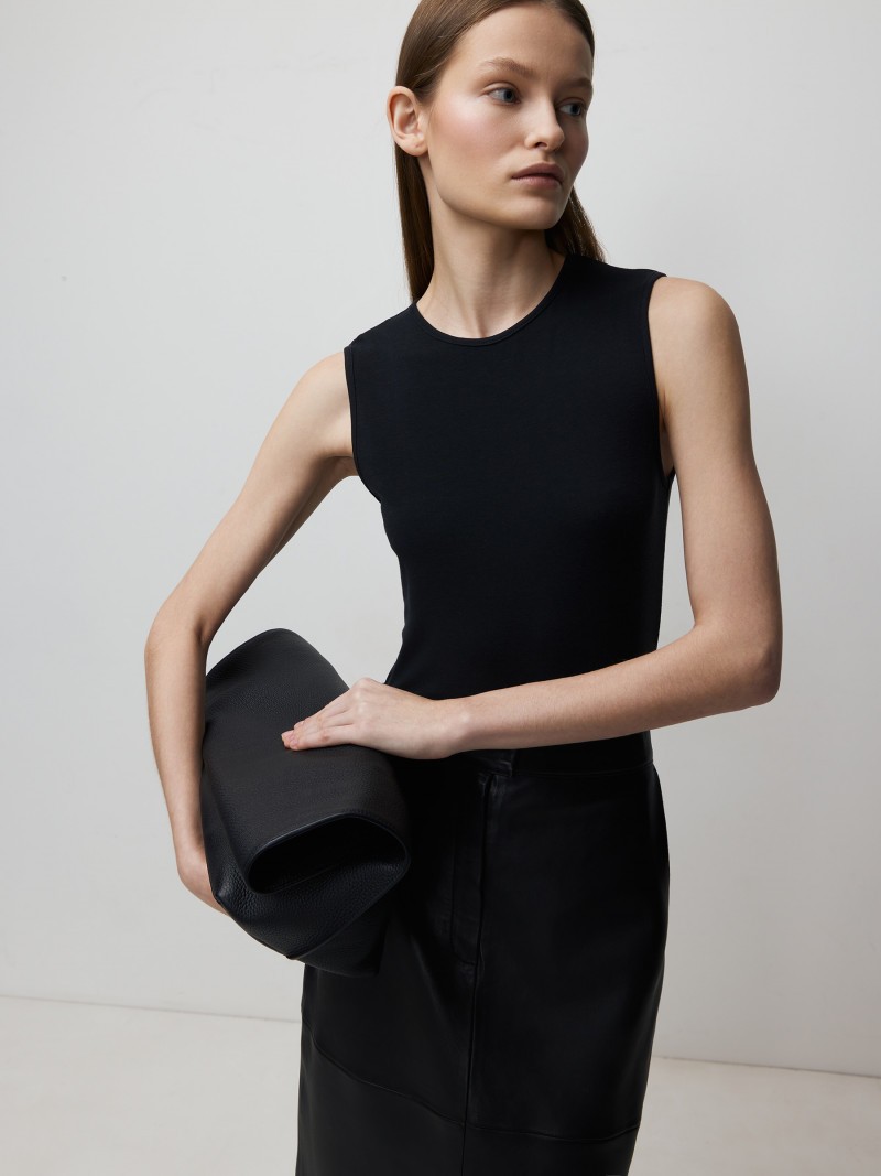 Мягкая базовая майка в мелкий рубчик незаменима для многослойных образов. Универсальная длина, классический вырез горловины, широкие бретели — такую можно надеть с жакетом, рубашкой или толстовкой. Трикотаж с добавлением шерсти слегка согревает, а значит, комфортно будет в любую погоду. Сделано в Китае.