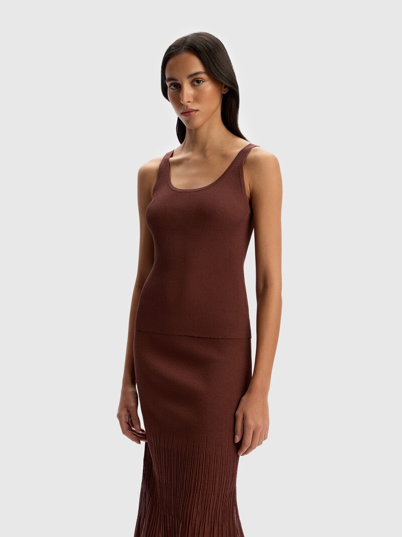 Лаконичная майка из полупрозрачного трикотажа легко впишется в летние городские образы и станет любимой униформой в отпуске. Связана из гладкой шелковистой пряжи на основе вискозы и комфортно прилегает к телу благодаря рибовому переплетению. Двойная рибана по краю выреза и в проймах защищает изделие от растяжения. У этого изделия низкая пиллингуемость. При правильном уходе первые пилли могут появиться на нем в среднем через 10 носок. Сделано в Китае.