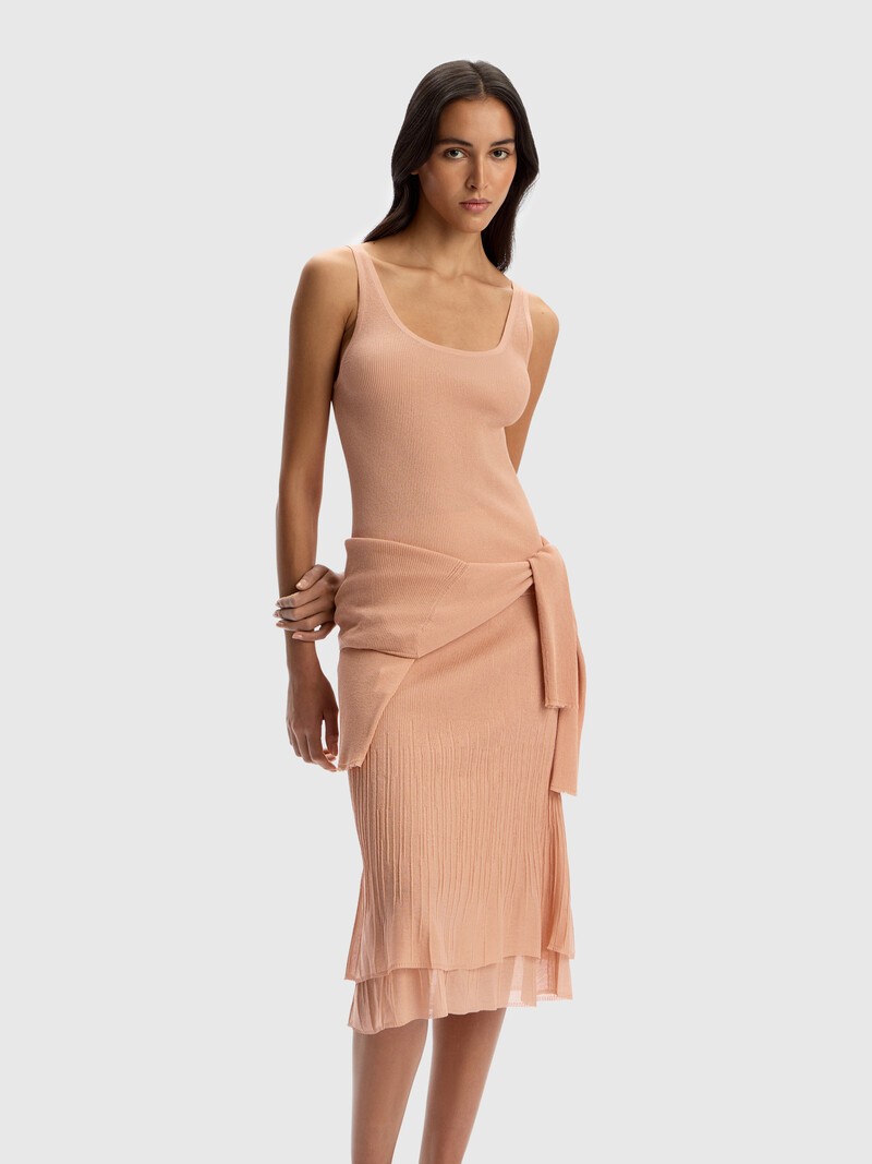 Лаконичная майка из полупрозрачного трикотажа легко впишется в летние городские образы и станет любимой униформой в отпуске. Связана из гладкой шелковистой пряжи на основе вискозы и комфортно прилегает к телу благодаря рибовому переплетению. Двойная рибана по краю выреза и в проймах защищает изделие от растяжения. У этого изделия низкая пиллингуемость. При правильном уходе первые пилли могут появиться на нем в среднем через 10 носок.