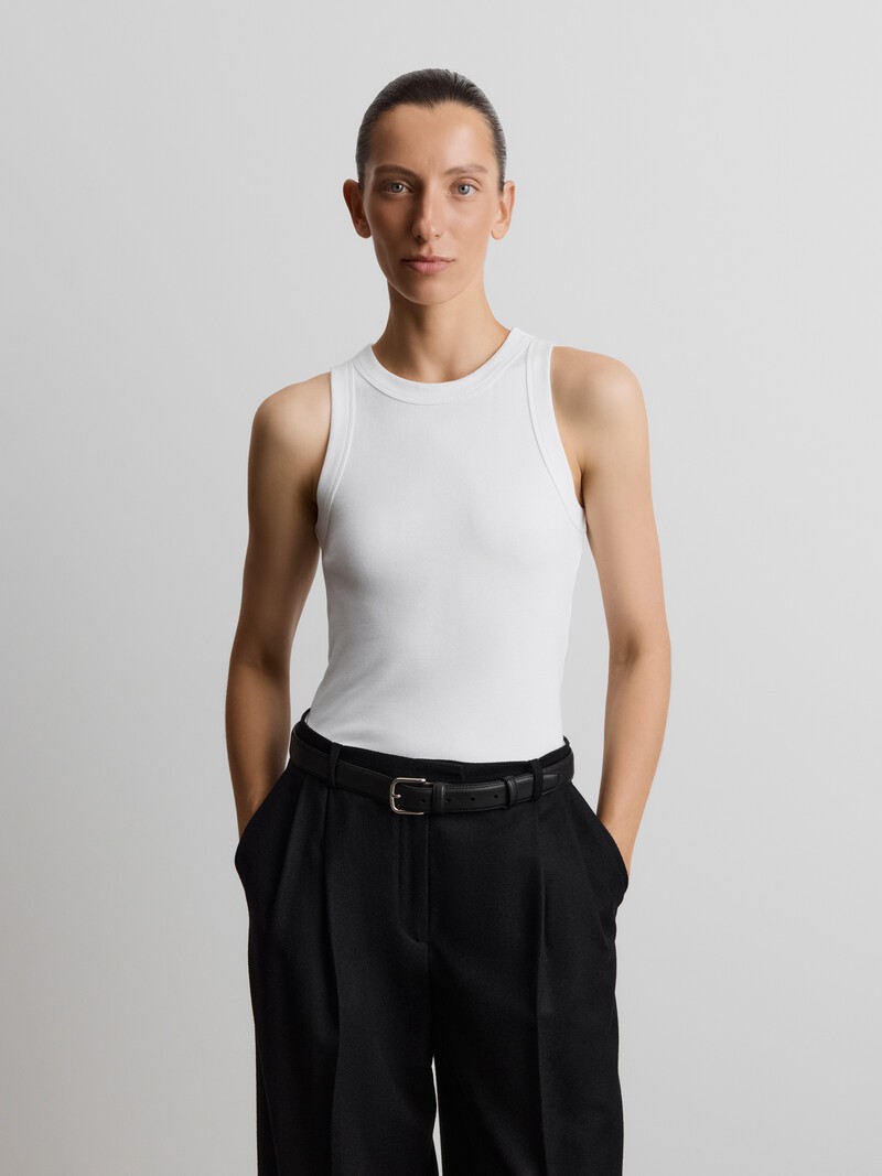 Лаконичная базовая майка в рубчик — из тех вещей, которые дарят комфорт каждый день. Ее можно носить как навыпуск, так и заправив внутрь — например, в качестве первого слоя под одежду из шерсти. Тонкий и мягкий хлопковый трикотаж поддерживает оптимальную температуру тела и почти не мнется.