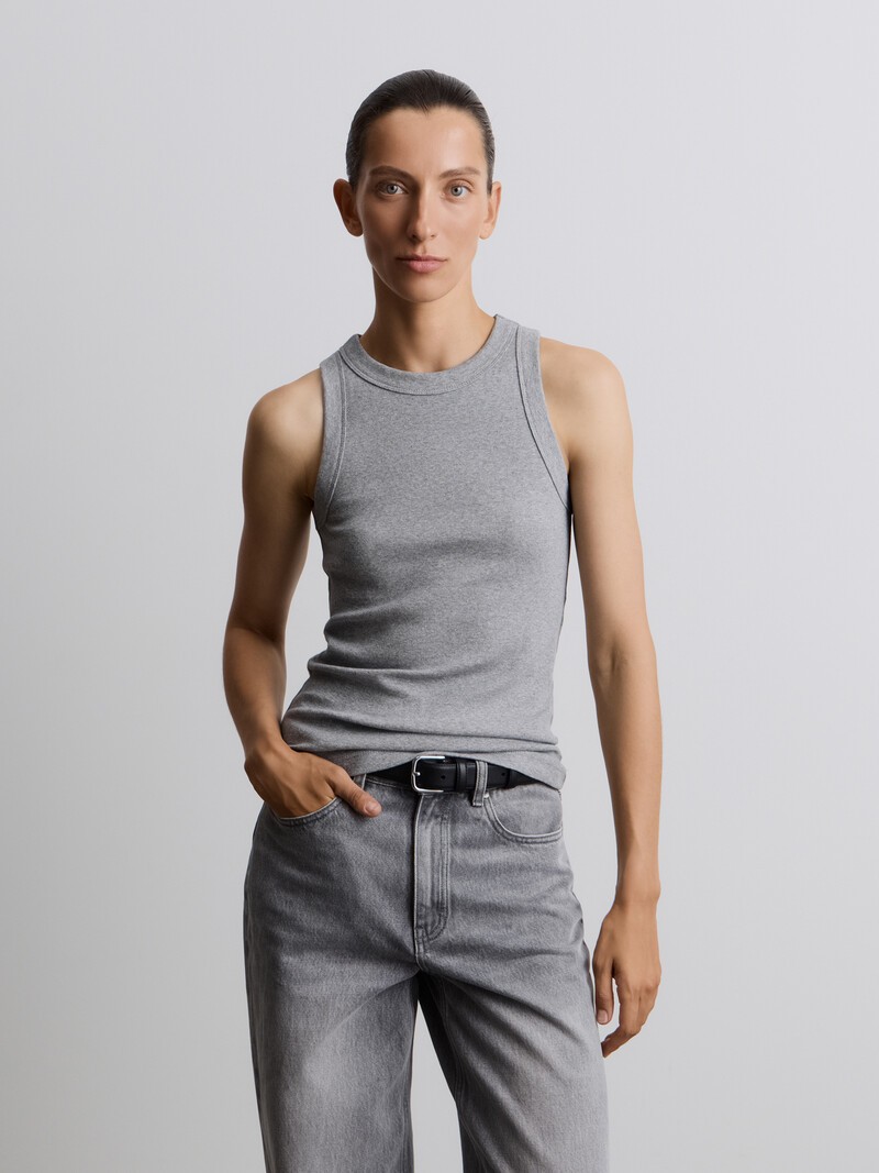 Лаконичная базовая майка в рубчик — из тех вещей, которые дарят комфорт каждый день. Ее можно носить как навыпуск, так и заправив внутрь — например, в качестве первого слоя под одежду из шерсти. Тонкий и мягкий хлопковый трикотаж поддерживает оптимальную температуру тела и почти не мнется.