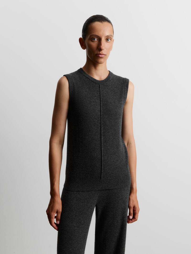 Лаконичный топ из нежного трикотажа — вы можете дополнить его жакетом днем или сделать частью вечернего образа. Мы используем здесь тонкую и почти невесомую нить из пуха кашмирских коз: высокое качество волокон делает это изделие более долговечным и стойким к пиллингу. При трении о шероховатые поверхности пушинки кашемира могут скатываться. При правильном уходе первые пилли могут появится на изделии спустя 4-7 носок. Чтобы удалить пилли, пользуйтесь специальной машинкой. Сделано в Китае.