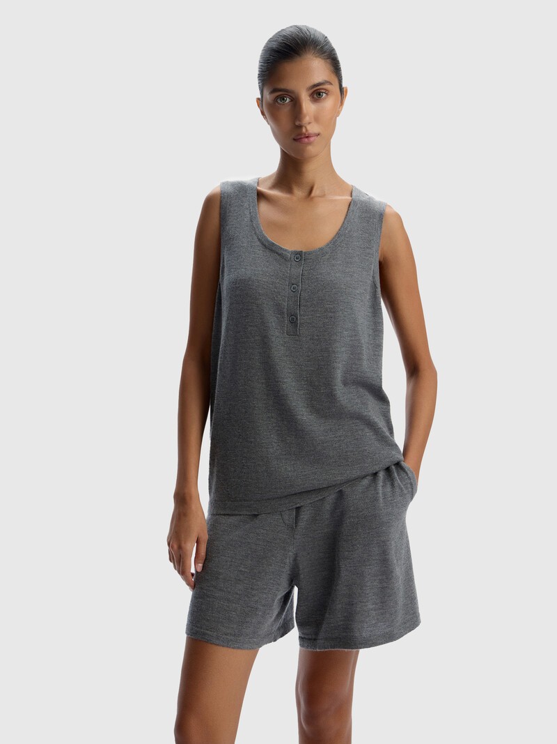 Комфортный, свободно прилегающий топ с изящными пуговицами из перламутра — для домашнего отдыха или прогулки за кофе воскресным утром. Мы связали его в одну нить из тонкой шерсти с кашемиром — трикотаж получился гладким, пластичным и необычайно уютным. Сделано в Китае.