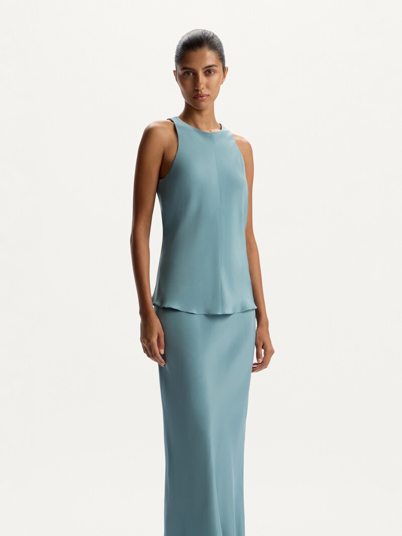 Эта полуприталенная лаконичная модель с вырезом халтер и застежкой на пуговицу подойдет как для эффектных вечерних, так и для спокойных дневных образов. Плотный, тяжелый шелк мягко облегает силуэт и красиво переливается при движении. 100% Mulberry шелк — самый ценный вид шелковых волокон. Сотканный из тончайших нитей, этот матовый материал отличается особой прочностью. Сделано в России.