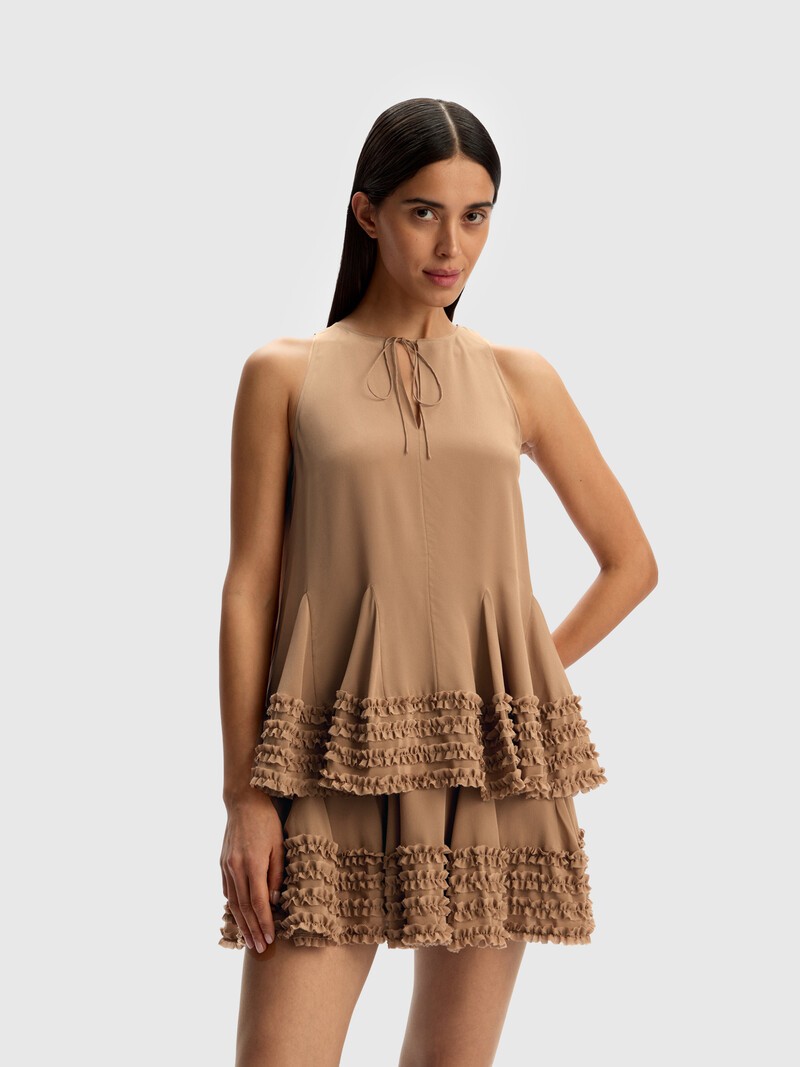 Полупрозрачный топ из шелкового шифона — для легких и романтичных образов в летние дни. Его рюши напоминают бахрому — мы оставили их срезы без обработки, чтобы создать дополнительный объем, не утяжеляя силуэт. Без подкладки. Деликатный материал требует бережного обращения. Аксессуары могут оставить затяжки или повредить нить. 100% Mulberry шелк — самый ценный вид шелковых волокон. Такой шелк сияет и переливается при любом освещении, а его нити тоньше, легче и прочнее аналогов. Сделано в Китае.