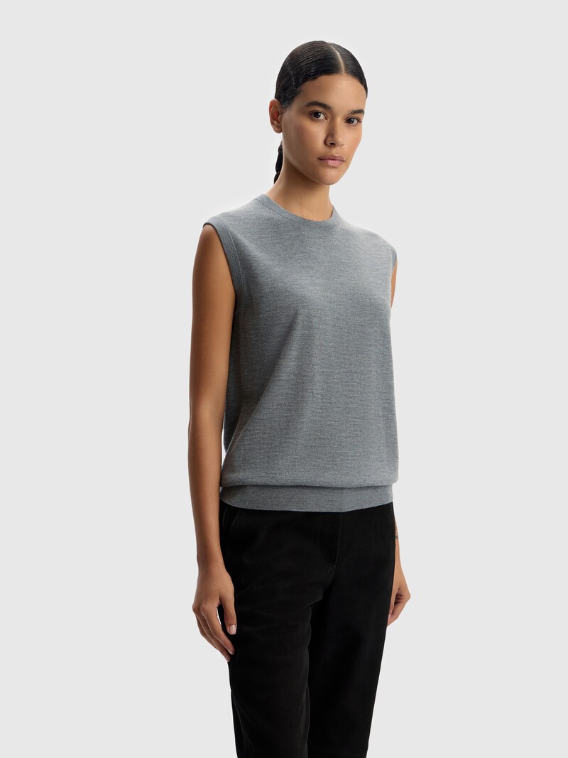 Комфортный базовый топ с небольшими проймами и аккуратным круглым вырезом. Связан в одну нить из шерсти австралийского мериноса, по своим качествам напоминающей кашемир. Такой трикотаж получается тонким, пластичным и шелковистым, а деликатный оттенок позволяет вписать топ в любой гардероб — например, в сочетании с жакетом или кардиганом из нашей коллекции. У этого изделия низкая пиллингуемость. При правильном уходе первые пилли могут появиться на нем в среднем через 10 носок. Сделано в Китае.