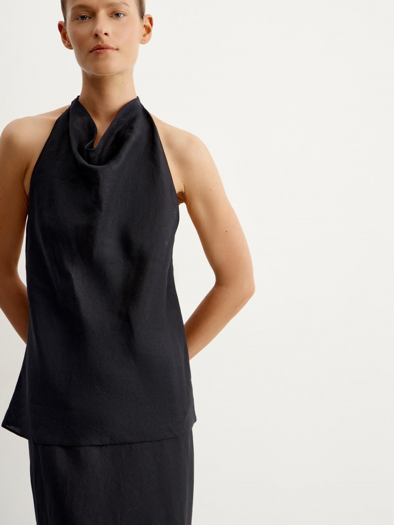 Топ с открытой спиной и высоким воротником выполнен из тонкого, легкого и пластичного льна и скроен по диагонали — так, без вытачек и рельефов, он естественным образом облегает силуэт. Застегивается на потайную молнию. Сочетайте с юбкой из нашей коллекции. European Flax — сертифицированный европейский лен высшего качества: помогает сократить глобальный углеродный след, безопасен для человека и становится лучше с каждой стиркой Сделано в Китае.
