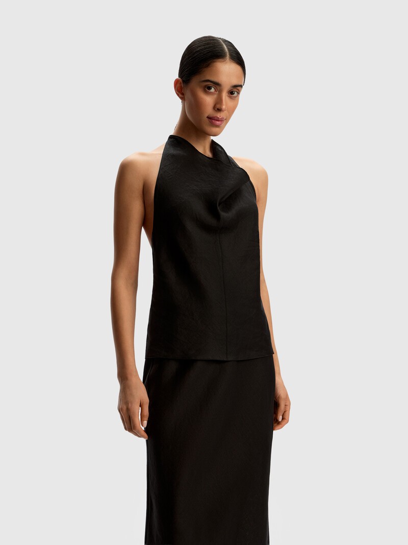 Топ с открытой спиной и высоким воротником выполнен из тонкого, легкого и пластичного льна и скроен по диагонали — так, без вытачек и рельефов, он естественным образом облегает силуэт. Сочетайте с юбкой из нашей коллекции. European Flax — сертифицированный европейский лен высшего качества: помогает сократить глобальный углеродный след, безопасен для человека и становится лучше с каждой стиркой.
