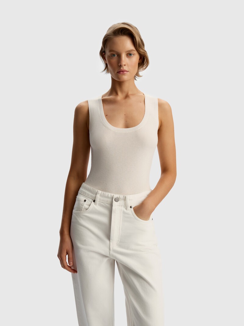 Комфортный базовый топ — альтернатива привычным хлопковым майкам. Такой можно надеть под пиджак или куртку из денима, создавая более уютные и интересный повседневные образы. Связан резинкой в одну нить из 100% шерсти мериноса, нежной и совсем не колкой. Пожалуйста, обращайтесь с топом бережно: острые предметы и аксессуары могут оставить на тонком трикотаже зацепки или повредить нить. У этого изделия низкая пиллингуемость. При правильном уходе первые пилли могут появиться на нем в среднем через 10 носок. Сделано в Китае.
