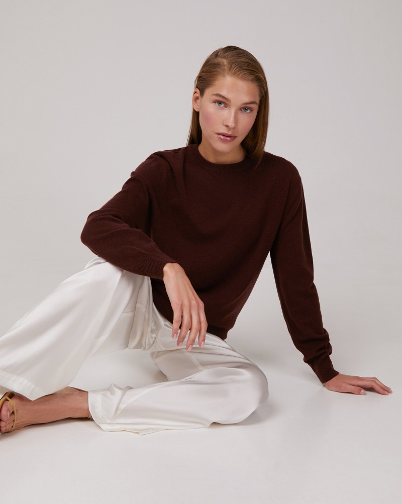 Джемпер из тонкого кашемира. Удлиненный джемпер оверсайз с лаконичным круглым вырезом. Манжеты и нижний край вывязаны резинкой, благодаря которой можно регулировать длину рукавов и посадку на бедрах. Завершить образ можно с помощью брюк и юбок контрастных оттенков или надеть свитер поверх платья из шелковистого материала. Мы стали использовать монгольский кашемир, который особенно ценится среди производителей одежды премиум-сегмента. Джемперы 12Storeez стали еще мягче, легче, теплее и пушистее. Этот редкий вид кашемира получают из пуха горных коз породы Alpas White, которые пасутся на экологически чистых полупустынных лугах Внутренней Монголии. Каждый волосок естественного подшерстка тоньше человеческого волоса в 3-4 раза, что делает кашемир необычайно легким и мягким. Сделано в Китае.