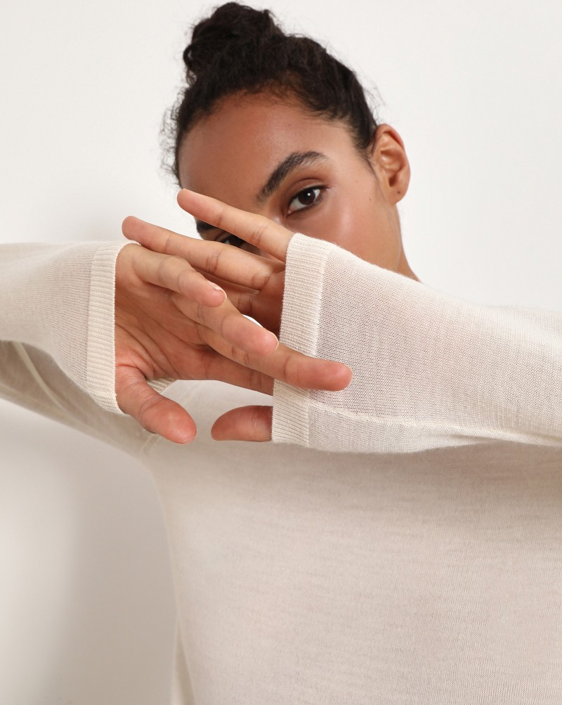 Базовый джемпер облегающего силуэта с круглой горловиной и длинными рукавами с отворотами. Выполнен из тонкой 100% шерсти, прошедшей специальную обработку. Благодаря этому пряжа становится шелковистой, не колкой, но такой же теплой. Сделано в Китае.