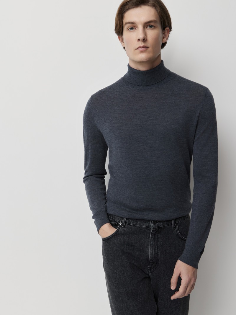 Базовая водолазка для многослойных образов в межсезонье. Она связана из тонкорунной шерсти мериноса, не колется и комфортно облегает силуэт. Широкие манжеты и воротник хорошо держат форму и не будут растягиваться со временем. Сделано в Китае.