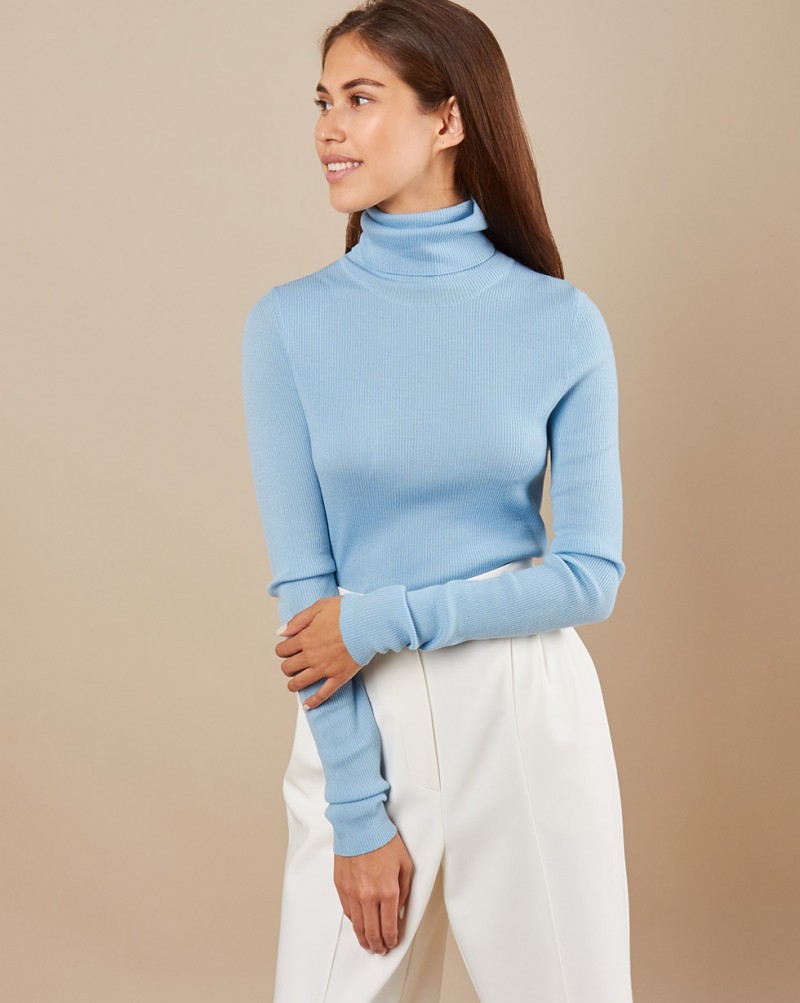 Базовая водолазка в тонкий рубчик с высоким воротом. Отлично сядет на любую фигуру благодаря эластичности. Выполнена из 100% шерсти. Сделано в Китае