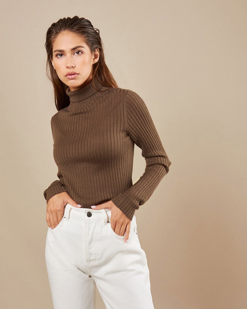 Водолазка в рубчик. Облегающая водолазка в широкий рубчик. Выполнена из тонкого мягкого трикотажа. Классический отложной воротник-стойка, длинные рукава без манжет. Сделано в Китае