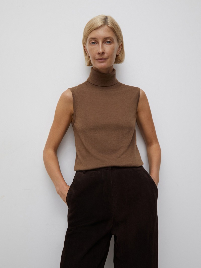Джемпер с высоким воротником — комфортная альтернатива водолазкам и свитерам в образах с жакетами. Для модели выбрали мягкую шерсть мериноса с невесомыми волокнами кашемира, из которой связали плотный и тонкий трикотаж. Сделано в Китае.