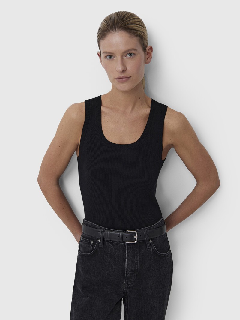 Базовый топ — современная альтернатива привычным хлопковым майкам. Нежная шерсть мериноса совсем не колется, а связанное резинкой полотно приятно прилегает к телу. Идеален в качестве первого слоя с пиджаком или любимой джинсовкой. У этого изделия низкая пиллингуемость. При правильном уходе первые пилли могут появиться на нем в среднем через 10 носок.