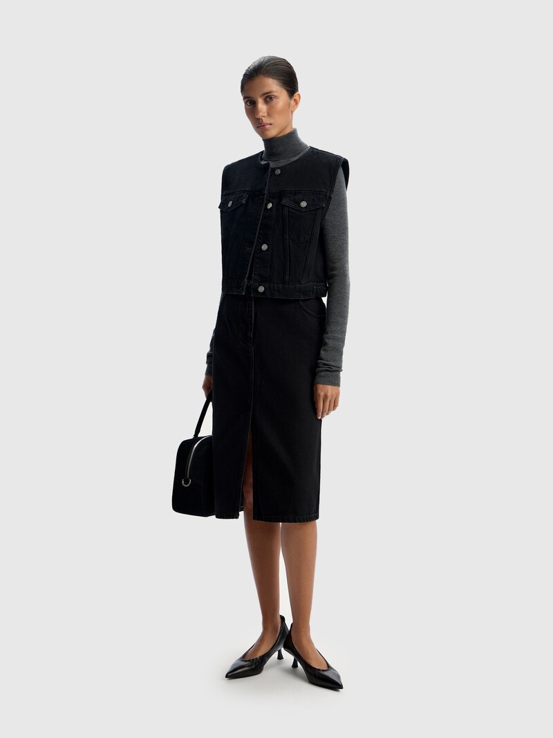 Удобная и универсальная юбка из денима — прямая, длиной чуть ниже колена, с аккуратным разрезом спереди. Выполнена из регенеративного хлопка плотностью 14 Oz с деликатными эффектами стирки с камнями на швах. Застегивается на молнию и пуговицу. Патч из натуральной кожи. Регенеративный хлопок помогает сохранить здоровье почвы и восстановить плодородный слой. Его выращивание безопасно для фермеров и биосистемы, исключает пестициды и химические удобрения.
