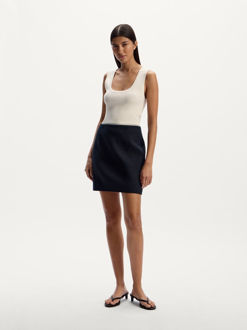 Классическая юбка мини с посадкой на талии, без карманов — комфортная модель для офиса и отдыха в городе. По верхнему краю пояса добавлен изящный кант из искусственной кожи. Материал — фактурная мягкая ткань с выраженным геометричным переплетением. Сочетайте с жакетом из нашей коллекции. На подкладке. Сделано в Турции.