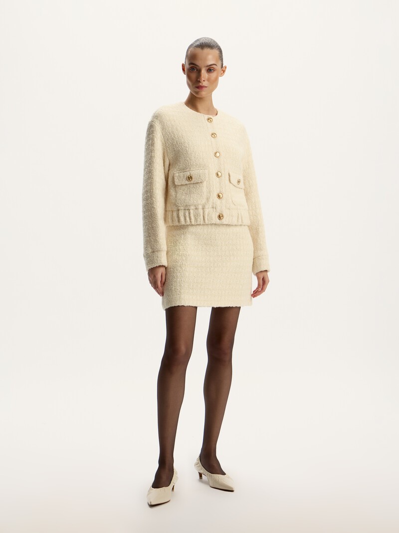 Лаконичная юбка из мягкого твида с буклированной фактурой дополнит праздничный образ и пригодится в будни. Эту женственную модель удачной длины легко сочетать с любым верхом — от уютного кашемирового свитера до жакета из нашей коллекции. Застегивается на молнию. Деликатный материал требует бережного обращения: аксессуары могут оставить затяжки или повредить нить. Сделано в России.