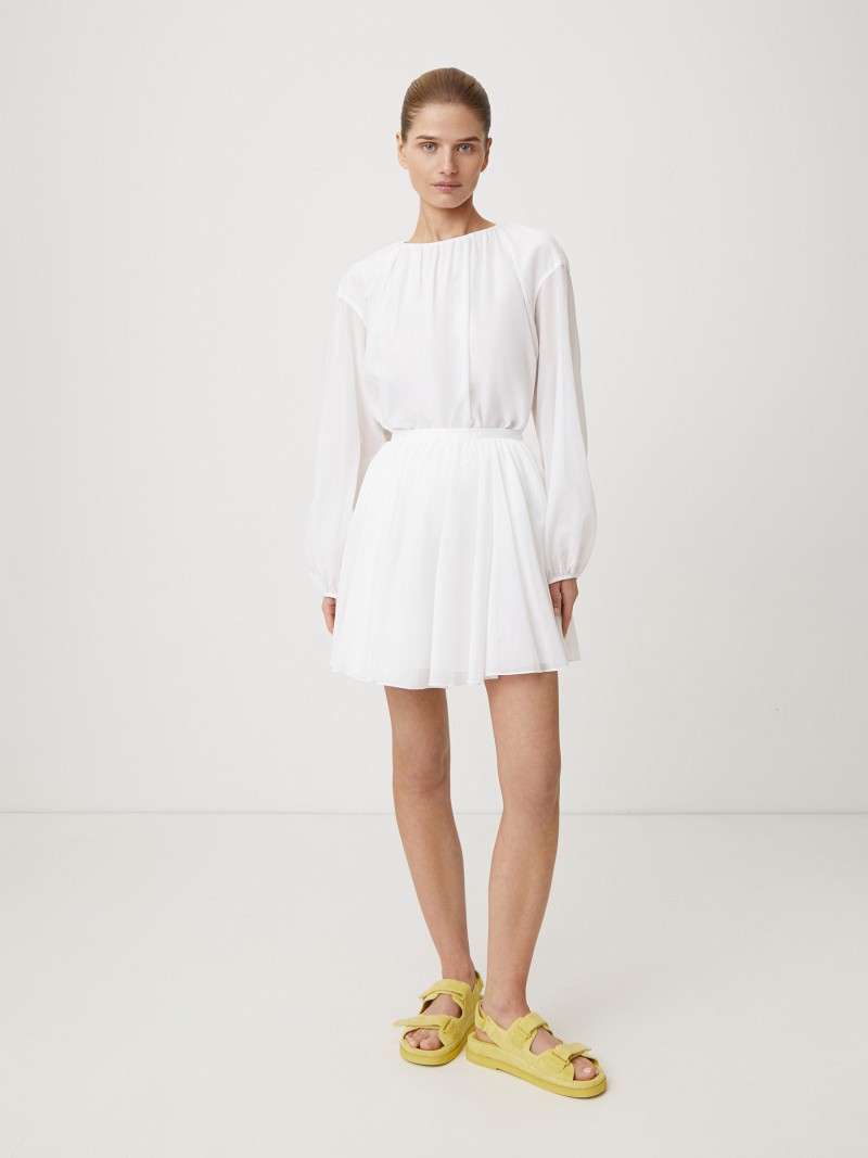 Юбка-облачко для самых легких образов. Мы сшили ее из вуалевой полупрозрачной ткани, в которой тонкие волокна хлопка сочетаются с нежным шелком, и добавили хлопковую подкладку. А еще предусмотрели карманы и застежку на потайную молнию, чтобы вам было удобнее. Сделано в России.