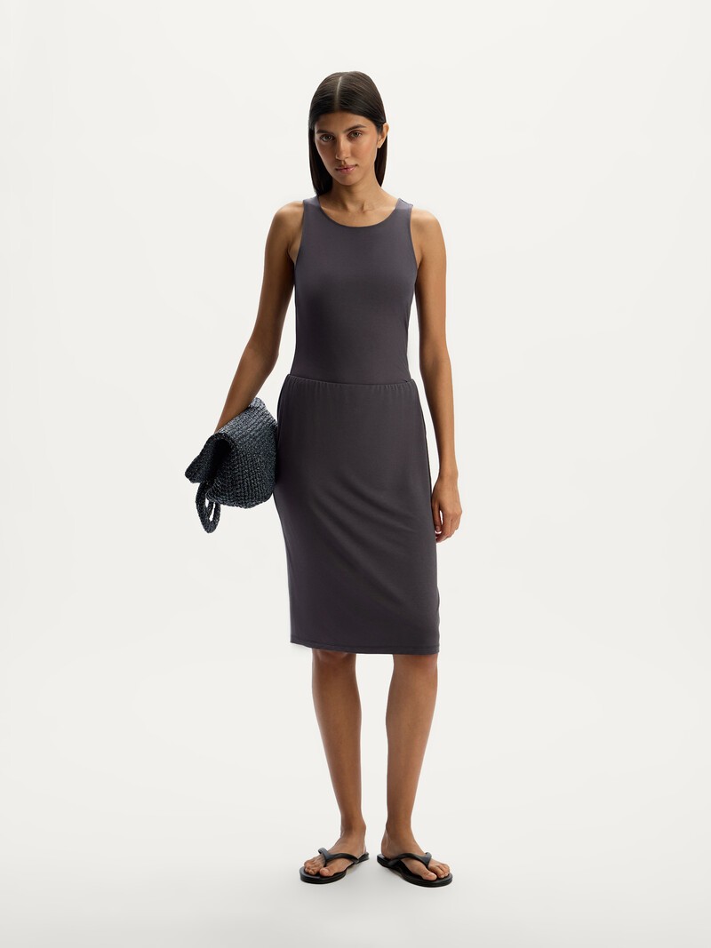 Юбка из нежного шелковистого трикотажа комфортно прилегает к бедрам, а в движении мягко очерчивает силуэт. Универсальная длина миди, слегка заниженная посадка, мягкий пояс из эластичной ленты и аккуратная подгибка по нижнему краю. Рекомендуем выбирать бесшовное белье — невесомый струящийся материал может слегка просвечивать. Сделано в Китае.