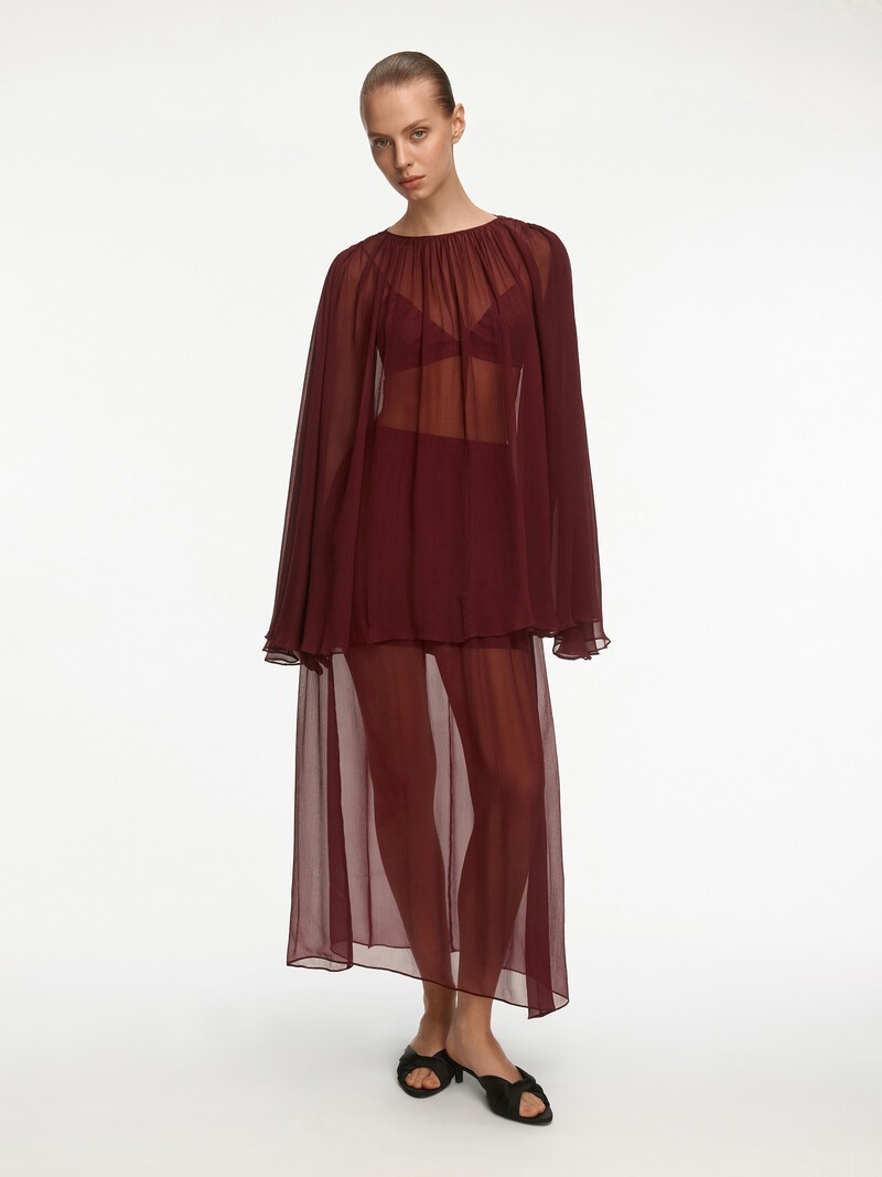 Невесомая юбка из шелкового шифона — универсальная модель, которая пригодится вам в любой сезон. Глубокий винный оттенок подчеркнет загар летом, а воздушность полупрозрачной ткани создаст яркий образ в холодный сезон. Для большего комфорта мы добавили лаконичные шорты из шелка — вы можете носить их комплектом или стилизовать юбку с узкими брюками, легинсами или боди. Деликатный материал требует бережного обращения: аксессуары могут оставить затяжки или повредить нить.