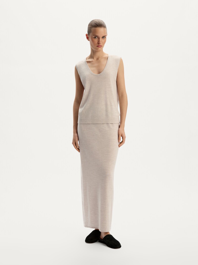 Прямая юбка макси с чуть заниженной посадкой, на тонком эластичном поясе — для повседневных комфортных образов. Сзади — высокий разрез для удобства в движении. Связана мелкими петлями из мягкой, пластичной и износостойкой мериносовой шерсти, которая отлично отводит влагу и совсем не колется. Такой трикотаж получается достаточно плотным и не просвечивает, но мы рекомендуем сочетать юбку с бесшовным бельем. Пожалуйста, обращайтесь с юбкой бережно: острые предметы и аксессуары могут оставить на тонком трикотаже зацепки или повредить нить. У этого изделия низкая пиллингуемость. При правильном уходе первые пилли могут появиться на нем в среднем через 10 носок. Сделано в Китае.