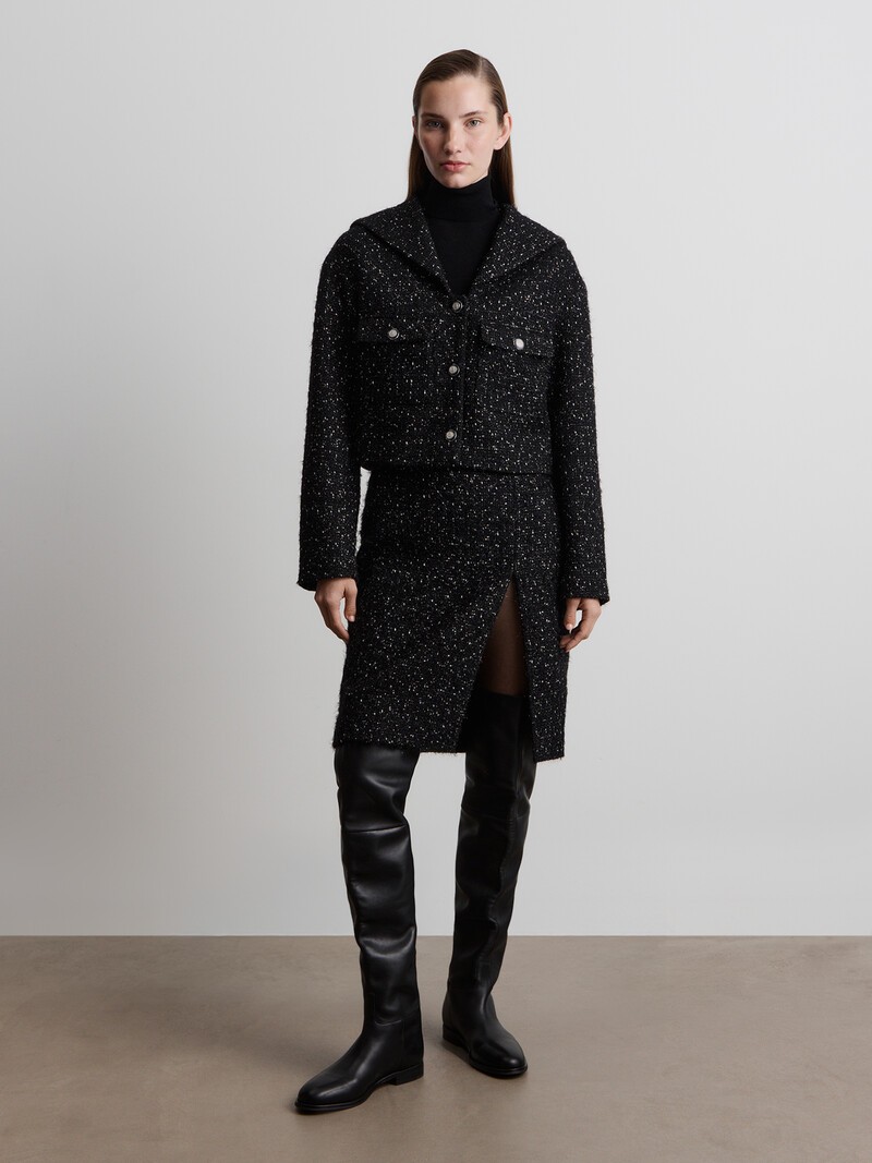 Лаконичная юбка из твида — комфортная заниженная посадка, высокий выразительный вырез, универсальная длина по колено. Фактурный мягкий материал с вкраплениями люрекса и высоким содержанием шерсти позволит создать как вечерний, так и повседневный образ — к примеру, в сочетании с жакетом из нашей коллекции или базовым трикотажем. На подкладке из поливискозы. Застегивается на потайную молнию. Деликатный материал требует бережного обращения: аксессуары могут оставить затяжки или повредить нить. Сделано в Китае.