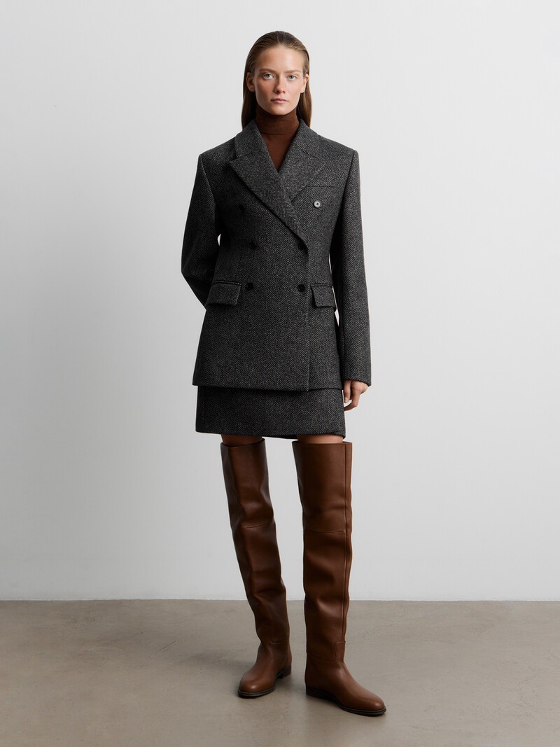 Наш бестселлер — аккуратная юбка мини. Чуть заниженная посадка, отсутствие пояса и удобные боковые карманы — с этой моделью вы не захотите расстаться до холодов. Плотная шерсть в елочку напоминает ткань для пальто — она превосходно держит форму, а сочетание контрастных нитей придает материалу глубину. На мягкой, шелковистой подкладке на основе купро. Сделано в Китае.