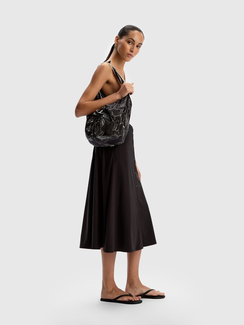 Легкая юбка с застежкой на пуговицы дополнит образ с купальником и выручит, если понадобится ненадолго уйти с пляжа. Посадка средняя, в боковых швах удобные карманы. По нижнему краю — аккуратная подгибка, как в городских текстильных моделях. Выполнена из гладкого плотного материала, который хорошо держит форму и не теряет со временем яркости и эластичности. Без подкладки. Сделано в Китае.
